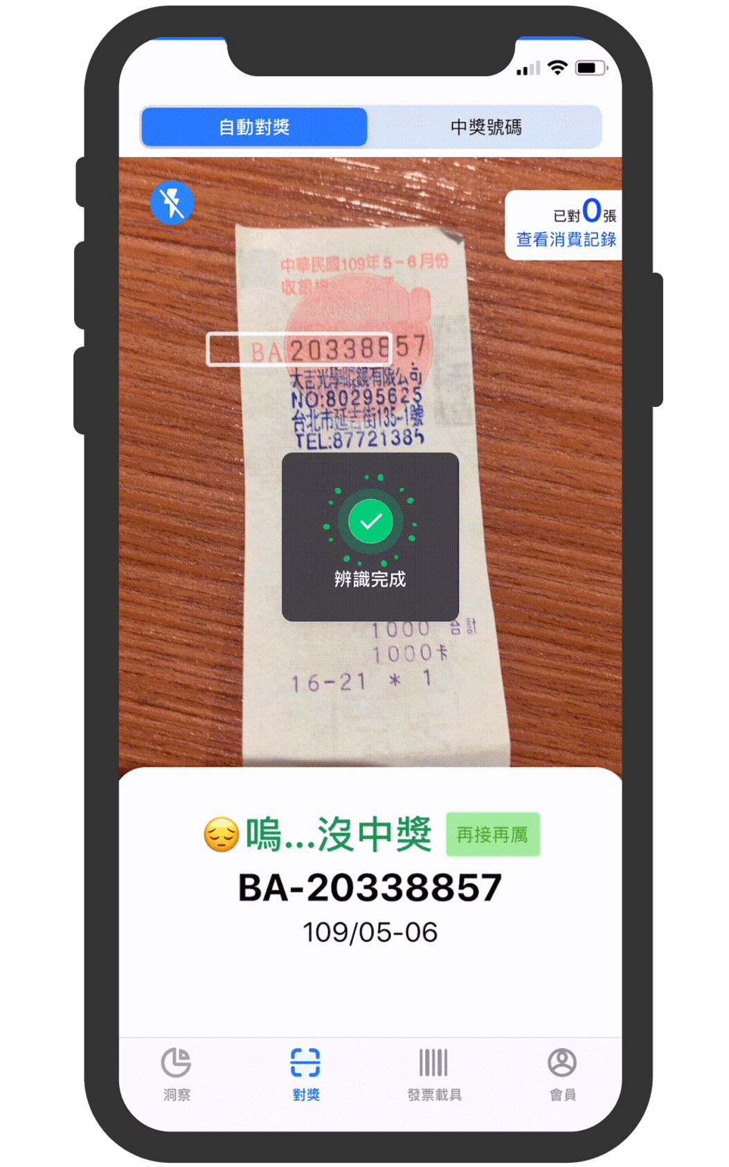 分類?不⽤! 獨有的 AI 專利技術,不論是長條式的傳統發票,或是皺皺的電⼦發票都能輕鬆對獎。